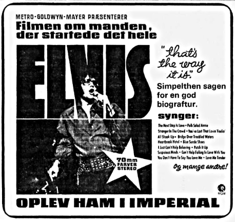 I takt med antallet af 70mm kopier til Danmark faldt i 1970'erne, gik der lang tid mellem 70mm premiererne. Den sidste 70mm premiere i Imperial Bio i 70'erne var "Elvis - That's the way it is" i maj 1971. Imperial Bio havde dog nogle 70mm re-premierer, blandt andet "Camelot" og "Panserslaget ved Ardennerne" samt premiere på enkelte 35mm 4-kanals magnetlydsfilm heriblandt "STAR WARS" i 1977.
