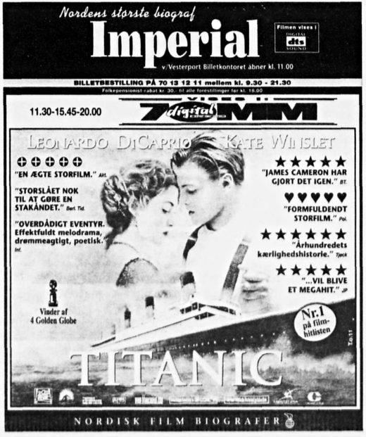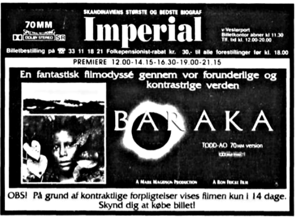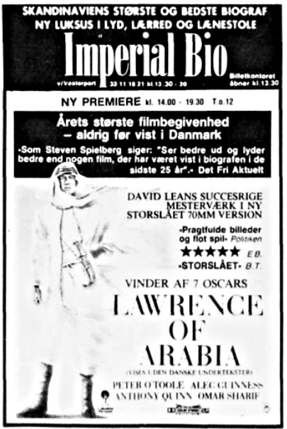 Biografannoncer for nogle af Imperial Bios mange flotte premierer i 70mm:
