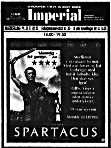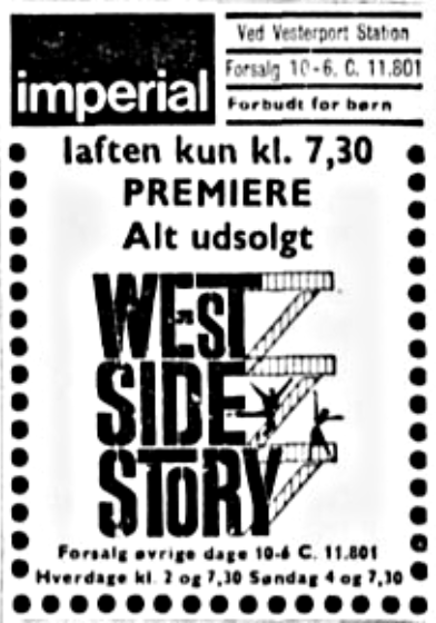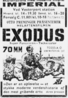 (Nordisk Film) Tlf. 7013 1211. Imperial åbnede i 1961 med 70mm filmen "Exodos". Der var oprindelig 1.521 pladser fordelt på 26 rækker og det var Danmarks 3. største biograf. Den var udstyret til alle daværende filmformater fra 16mm til 70mm.