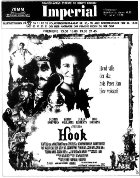 Annoncer fra 1990 og 1992 - 70mm DOLBY stereo (HOOK var ikke DOLBY SR, men DOLBY A!)