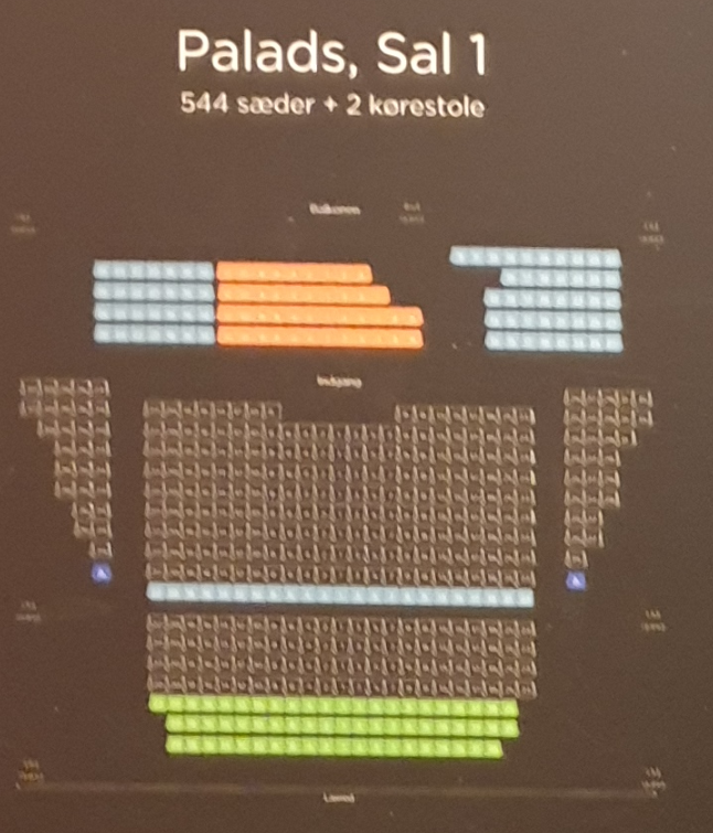 Sal 1: 547 pladser, 18 rækker + 5 rækker på balkon