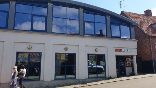 (foreningsbiograf) Tlf. 5648 6066 Biografen blev bygget i 1943 og hed oprindelig Kino. I 2001 blev den ombygget og har i dag en sal med 135 pladser (heraf 6 kørestol) fordelt på 10 rækker. Der er 125 cm mellem rækkerne. Man valgte at rive hele forhuset ned og bygge ny foyer. Der er indgang til salen i 1. sals højde, idet salens hældning nu er for stor til at indgang ikke længere kunne ske fra stueplan. Billede: CS, WS 1,66 og 1,85 samt normalformat. Lærred max. 7,5 meter. Lyd: DTS og DOLBY Digital.
