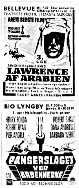 Annoncer for diverse 70mm film i perioden 1965-1970