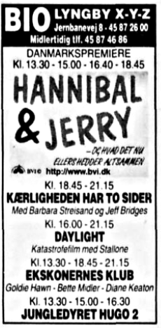 "Hannibal & Jerry" af Wikke & Rasmussen, havde premiere 7. februar 1997. Egentlig var filmen slet ikke premieresat i Bio, men lidt før vinterferien ringede Disney/BVI for at høre om der var plads da de havde en ledig kopi. Bio havde "kun" "Jungledyret Hugo 2", som havde haft premiere 2. juledag 1996, på programmet som børnefilm, så der blev sagt ja tak. Anmelderne var ikke specielt begejstrede for "Hannibal & Jerry", det var publikum til gengæld. Filmen blev en kæmpe succes. Grundet koncert ugen op til vinterferien var 1. række nedtaget i sal X, men der blev i den grad behov for rækken i vinterferien, så den blev genopsat i en fart.