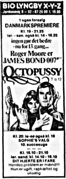 Med danmarkspremieren på "007-Octopussy" i august 1983 viste Bio at der stadig var potentiale til indtjening. Til trods for hedebølge, var der flere udsolgte forestillinger den første spilleuge (330 pladser). Personalet havde fået udleveret t-shirts med "Octopussy"-motiv. Hvis man trykkede på "blæksprutten" kom der en sjov lyd. Det kom der megen morskab ud af den sommer.