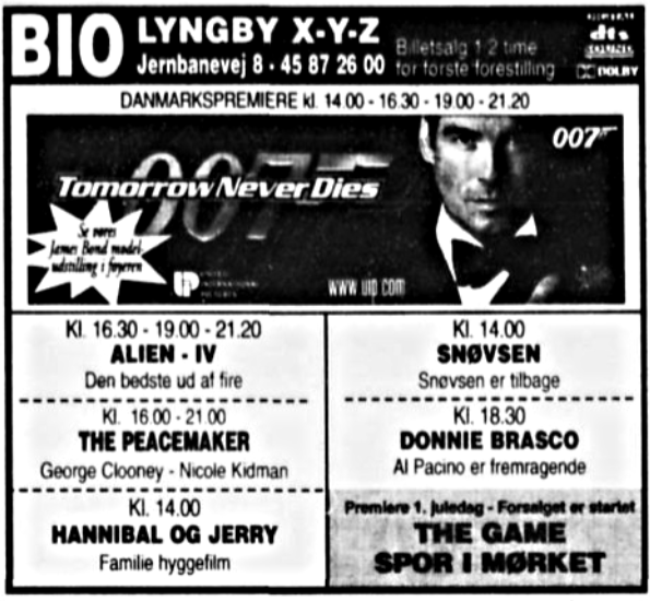 Se et udpluk af biografannoncer fra 1938-1999