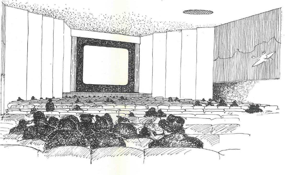 Bio Lyngbys arkitekter havde været så forudseende, at biografen var bygget så det ikke var noget problem at udvide lærredet. Der var således masser af plads i siderne og i højden til et større og bredere lærred, som det også fremgår af billedet ovenfor til højre.