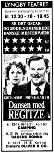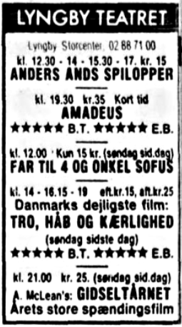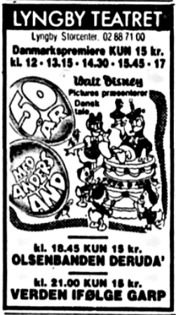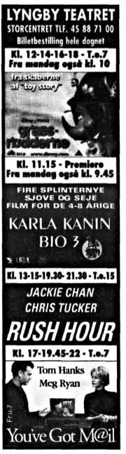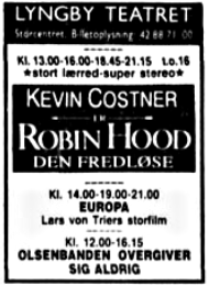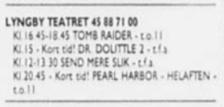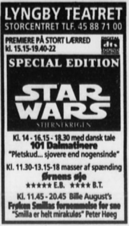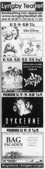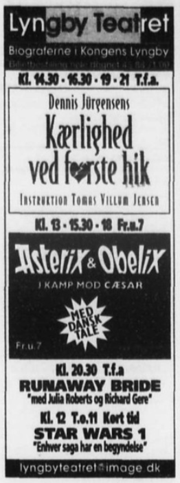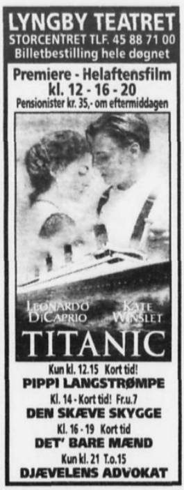 Lyngby Teatret viste f. eks "Danser med ulve", "Den engelske patient" og Disneys "Flubber" efter Bio. "Titanic", "Anastasia" og "HOOK" blev til gengæld vist i Bio efter Lyngby Teatret.
