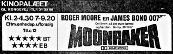 I 1979 kom der DOLBY stereo i forbindelse med premieren på "007-Moonraker". Jeg så selv filmen i Kinopalæet og var imponeret over den flotte lyd, især bas-lyden.