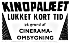 her). Kun 1 år blev det til med CINERAMA, derefter konverterede biografen til "normal" drift, men beholdt det store CINERAMA lærred i nogle år herefter.