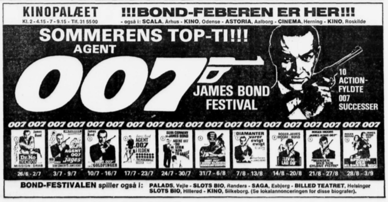 Biografen viste en blanding af storfilm - herunder flere 70mm film samt actionfilm og "007-film".