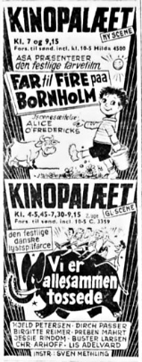 Biografen havde premiere på "Far til fire på Bornholm" som åbningsfilm 2. juledag 1959 og den gamle biograf fik dispensation til at vise film samtidig (i