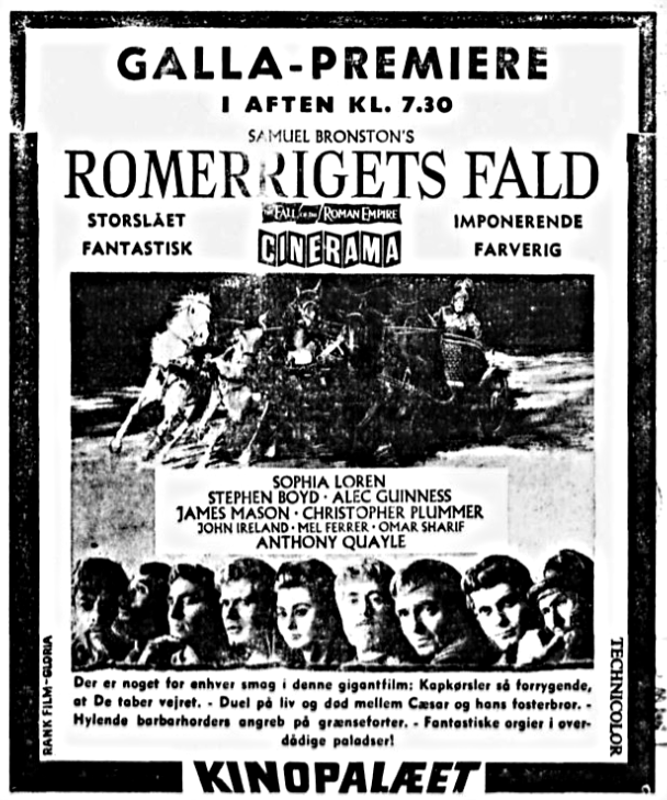 Perspecta stereolyd" og dernæst med CinemaScope og 4-spors magnetlyd og på et ca. 17 meter bredt lærred. Læs omtalen fra den ikke alt for begejstrede anmelder i Politiken