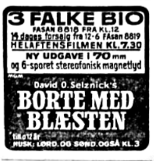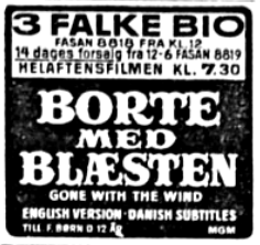 Som tiden gik, blev det dog mere og mere klart, at "Borte med Blæsten" slet ikke ville være færdigspillet i 3 Falke. En klausul i aftalen med MGM som udlejede filmen gjorde, at biografen ikke måtte tage den af programmet, såfremt indtægten var af en vis størrelse.