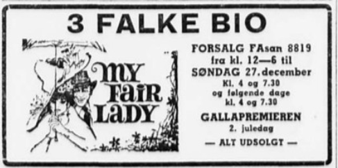 Mandag den 16. oktober 1964 havde biografen re-premiere på "Borte med Blæsten". Ingen havde vist regnet med den store succes - publikum strømmede til. Imidlertid havde direktør August Andersen tegnet kontrakt med Warner Brothers om premiere på "My Fair Lady" - 2. juledag 1964.