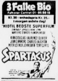 De sidste film i 3 Falke Bio - og ingen 70mm - Spartacus med sidste spilledag tirsdag den 14.12.82 - så var det slut