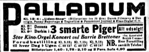 Palladium åbnede i januar 1938 med filmen "Tre Smarte Piger" med Deanna Durbin og lukkede 6. juni 2010 med 4 flotte piger i "Sex and the City 2".