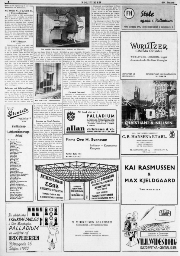 Indvielse af den nye Palladium Biograf - fra Politiken 19. januar 1938