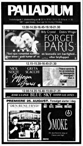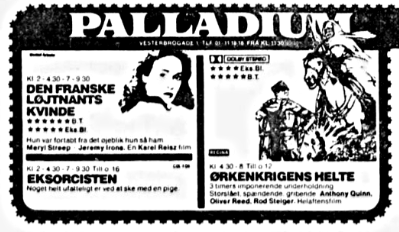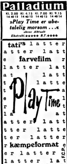 Malling Bio - se andetsteds på disse sider). Palladiums første 70mm film var "Can Can". Senere viste man bl.a. også "Playtime" i 70mm hvor Jaques Tati besøgte biografen.